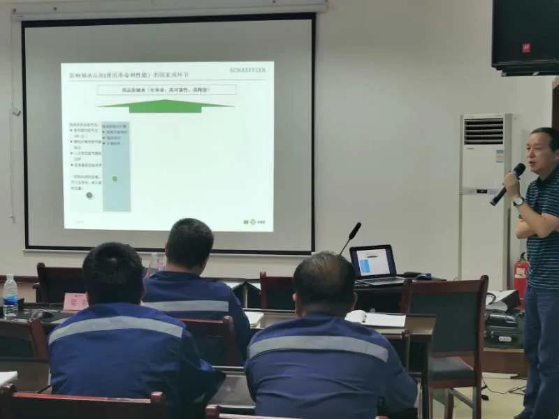 會(huì)上,舍弗勒上海技術(shù)工程師李博士與我司技術(shù)總工蘇工從軸承的基本知識(shí)、內(nèi)部結(jié)構(gòu)、安裝拆卸、維護(hù)潤(rùn)滑、故障判斷、游隙重要性等方面對(duì)參培人員進(jìn)行了詳細(xì)的講解。結(jié)合我司的服務(wù)案例及參培人員日常工作中遇到的維修、操作、保養(yǎng)等實(shí)際問(wèn)題進(jìn)行了交流和探討。此次技術(shù)交流為客戶的檢修工作奠定了良好的基礎(chǔ),為后續(xù)長(zhǎng)期合作建立起有效的溝通機(jī)制。
